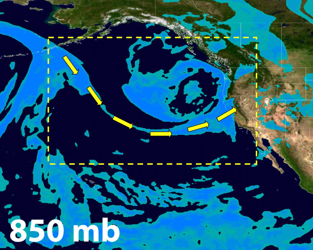 Generally speaking, Atmospheric River events that occur in California or along the Western Coast of the US are thought of as a phenomenon that occur when tropical moisture gets pulled northward by a low pressure system. However, the moisture does not need to originate from the tropics in order to form an AR. Such is the case with the AR event unfolding over the next several days in Central California, where the moisture is originating from a region to the North instead of near the Tropics.
